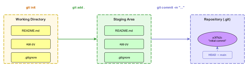Dateien müssen zunächst in die Staging Area und können dann committet werden: