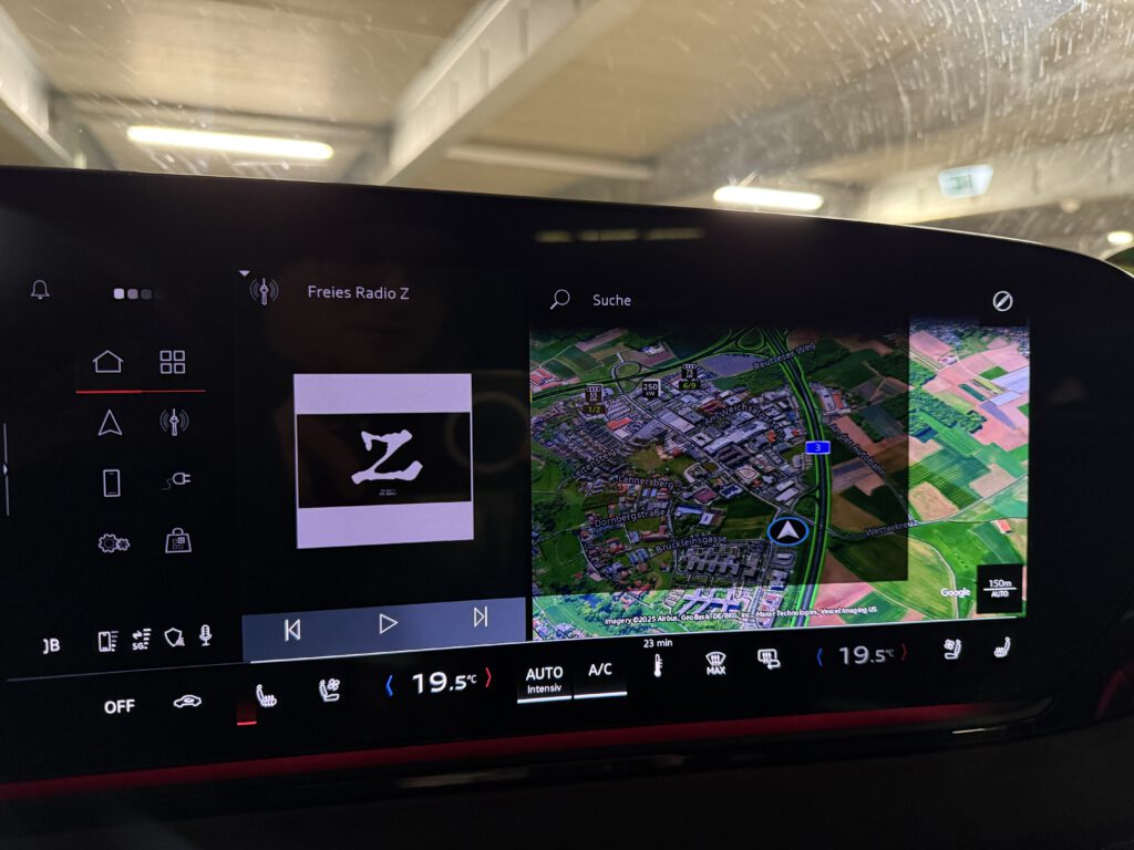 Die Ersteinrichtung war schon eine Zumutung: Die myaudi App sagt “scanne QR-Code” aber der QR-Code fehlt im Infotainment-Display. Das heißt, die Anmeldung muss über Email / Passwort passieren. Leider erklärt das Infotainment die Daten für ungültig, obwohl eigentlich nur die fehlende Internetverbindung die Anmeldung verhindert. Aus der Garage herausgefahren und dann ging es. Während der Eingabe der Nutzerdaten schoben sich zudem Disclaimer-Popups über die Eingabemaske. Nach dem Bestätigen der Disclaimer waren die Felder wieder leer. Sehr frustrierende Experience